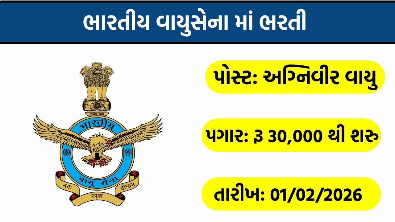 IAF Agniveer Vayu Recruitment 2026: ભારતીય વાયુસેના દ્વારા અગ્નિવીર વાયુ ના પદો પર ભરતી જાહેર